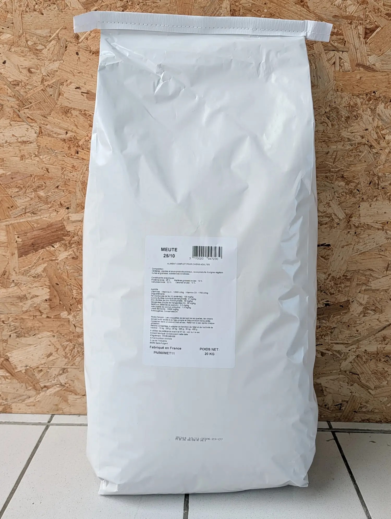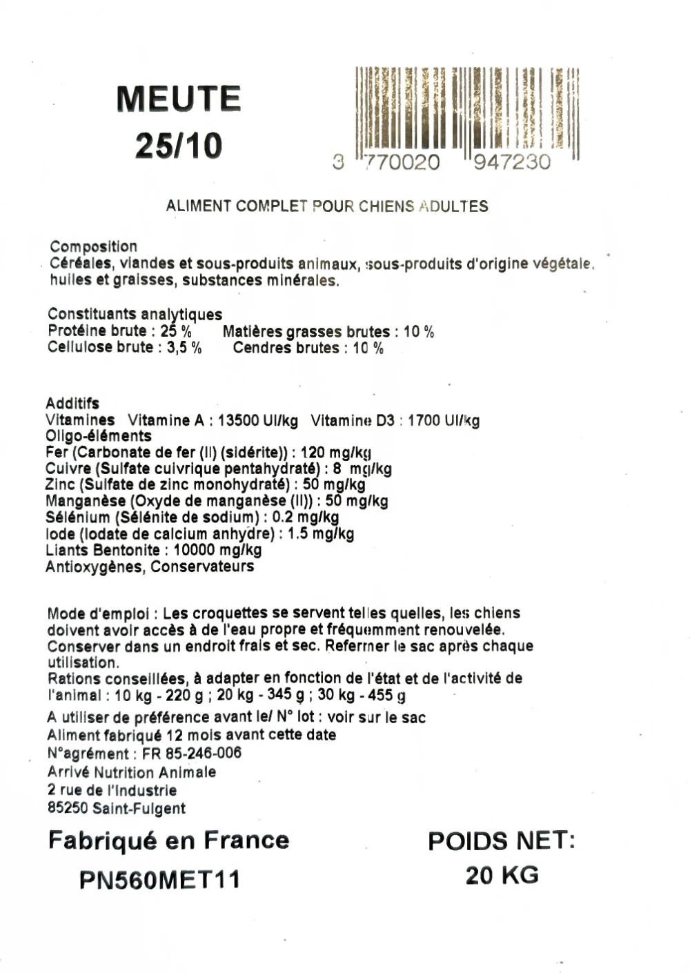 Protéine brute: 25% Matières grasses brutes: 10%